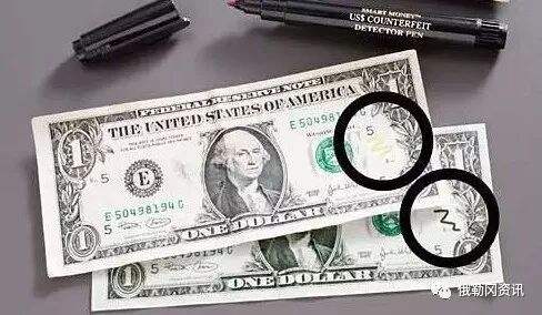 在美国不少人会购买验钞笔来检验真假币,用验钞笔在钱上划一下: