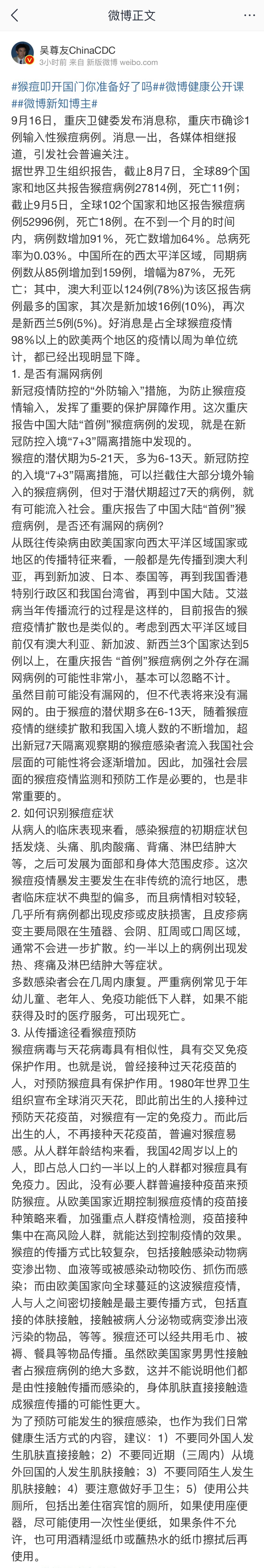 重庆输入性病例密接者猴痘核酸检测均为阴性