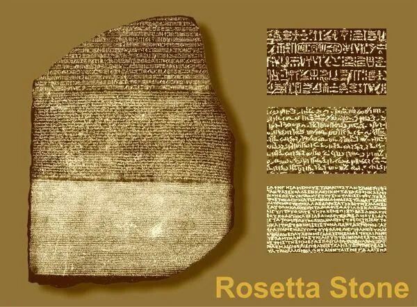 罗塞塔石碑上这种独特的三种语言对照的写法,意外成为解读古埃及文字的关键,让语言学家们得到了一把破译古埃及文字的钥匙。因为这三种文字,就像三个彼此对应的平行语料库,对罗塞塔石碑上古代埃及文字的解读,可以说是人类使用平行语料库方法来解读未知古代文字的一次成功范例。虽然罗塞塔石碑提供的语料库语言数据很有限,但学者们根据这些小规模的数据,利用已经熟练掌握的古希腊文作为参照,来比对和分析罗塞塔石碑上其它两种古埃及文字的内容,以已知的希腊文来解读未知的埃及象形文字和通俗文字,就有可能了解这些失传的古代语言的文字与语法结构。这样看来,重要的事情不仅要说三遍,更应该用不同的语言说三遍。