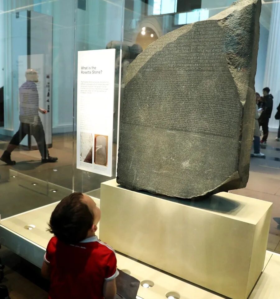 在英国伦敦大英博物馆埃及馆一个巨大的玻璃展柜里,有一块高 112 厘米、宽 76 厘米、厚 28 厘米的黑色花岗岩石碑,这就是罗塞塔石碑(Rosetta Stone)。这座看上去平淡无奇的石碑,跟中国顾恺之的《女史箴图》(The Admonitions Scroll)、古希腊帕台农神庙雕塑(The Parthenon Sculptures)等一起成为大英博物馆的镇馆之宝。
