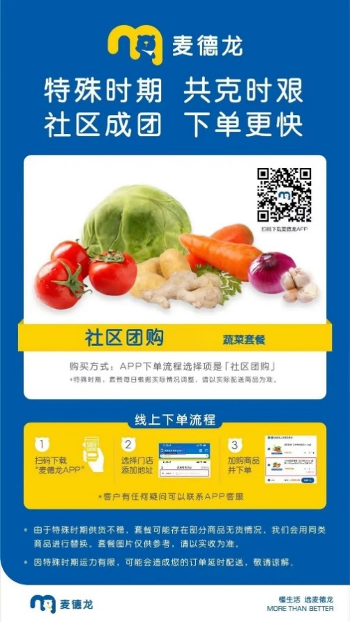 每天10:00起,麦德龙车辆会将货物送到小区,由社区安排后续配送。