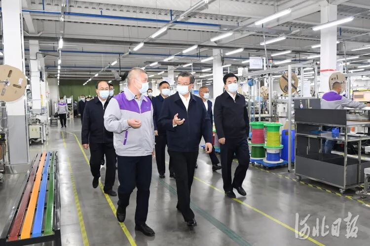 10月30日至31日,省委书记倪岳峰到保定市宣讲党的二十大精神。这是倪岳峰在蠡县立讯精密工业有限公司,实地察看县域特色产业发展,向企业职工宣讲党的二十大精神。河北日报记者赵海江摄