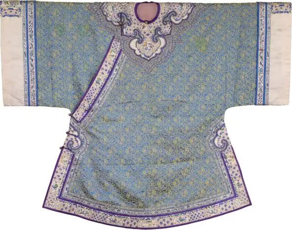 清 蓝地团龙纹刺绣滚边女褂