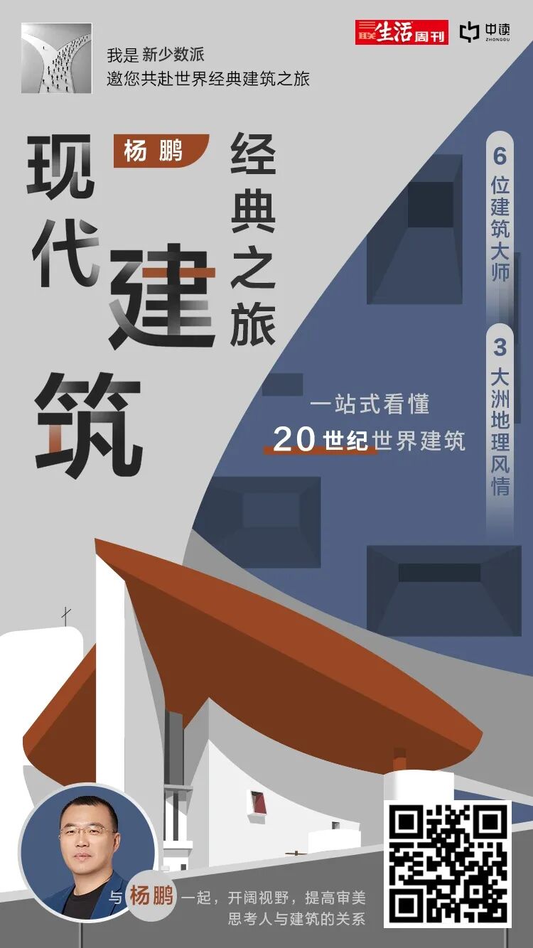 为此,三联中读特别邀请到中国人民大学艺术学院副教授、清华大学博士、国家一级注册建筑师杨鹏老师为大家精心制作了建筑艺术鉴赏视频专栏课《现代建筑经典之旅》,杨鹏老师将会带你一站式看懂20世纪世界建筑经典,开拓视野、提高审美,深刻思考人与建筑之间的关系。