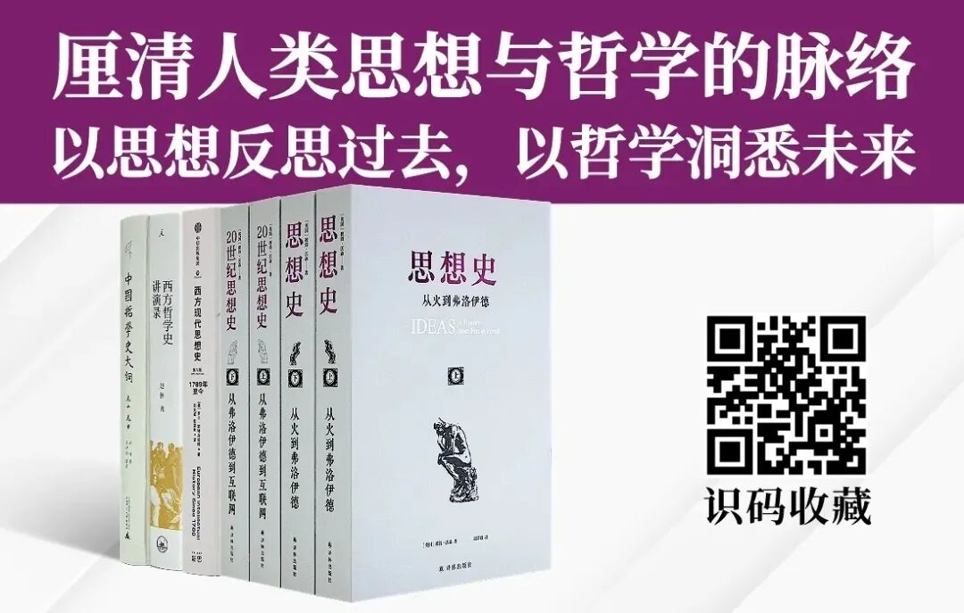 思想史和哲学史是人类历史上思想智慧的精华,了解思想史与哲学史的四大区别,可以帮助我们涤除自己思想中的种种偏见,亦可以帮助我们改变自己思维模式和观察眼光的方法,让我们成为一个有智慧的人。身处当下的我们很多时候心安理得地陶醉在快餐式的消费文化中,追求着一种廉价的快乐,却放弃了思考本质,只相信现象,从而相信本质不过是一个幻象。拉梅内在1819年便说道:“人们不再看书,不再有时间。精神高度分散,稍纵即逝。这种不允许延续或深思的加速运动将彻底毁掉人类的理性。”在这样消极的现状之中,读思想史和哲学史则变得相当急迫和重要。●思想史是记录了整个人类智慧的灵魂,在回答我们疑问的同时,思想史的阅读也会促使我们重新检视我们自己的世界观和价值观。因此可以说,如果你对自己的人生和生活有疑问,一定要读思想史,因为它几乎能回答你所有的疑问。彼得·沃森在《思想史:从火到弗洛伊德》中纵览自人类直立行走与取火直至20世纪初百家争鸣的思想文化发展历程。采用叙事体的写作手法将20世纪思想成就的历史当作一个伟大的故事娓娓道来,更以发人深省的笔法讲述人类何以成为今日的人类,帮助我们更深刻地理解世界、认识世界。罗兰·斯特龙伯格在《西方现代思想史》以高屋建瓴的历史眼光、激越昂扬的文字表述、犀利透彻的哲理分析,生动而简约地勾勒了现代西方思想全景。他将各派思想置于历史脉络之中,以时代为分期回顾了1789年以来的西方现代思潮。●想要真正地理解哲学,只有通过学习哲学史。因为哲学就像一个人的生命一样,也有它的儿童期和少年时期,有它的青年、成年和老年时期。哲学的主要功能不在于改造世界,而在于改变自身,它让我们学会了一种调整自身状态、改变自己思维模式和观察眼光的方法,让我们成为一个有智慧的人。一个有着智慧的人在面对世界时,首先考虑的不是世界本身是什么样的,而是我们用什么样的眼光来看世界。赵林教授在《西方哲学史演讲录》中尽可能把西方哲学史中的那些深奥晦涩的哲学思想讲得的通俗易懂,又做到不失哲学的本性和旨趣。他希望一个哲学的热爱者应该学会从简单的生活中去发掘复杂的道理,同时也应该学会把复杂的道理用简单的方式表述出来。胡适先生在《中国哲学史大纲》本书以证明的方法、扼要的手段、平等的眼光、系统的研究给我们一种研究本国哲学史的门径,他以“研究问题”和“输入学理”为手段,为传统文化“捉妖”、“打鬼”——他将深厚的旧学功底和杜威实验主义结合,用现代学术方法,让中国古代的哲学思想重新焕发了生命和活力。为此,先知书店诚挚推荐,彼得·沃森的《思想史:从火到弗洛伊德》、罗兰·斯特龙伯格的《西方现代思想史》、赵林的《西方哲学史讲演录》、胡适的《中国哲学史大纲》四书。识别下图二维码,即可一键购书,购书即赞赏原创。![]()