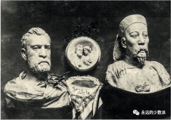 李鸿章与美国前总特格兰特。中间小浮雕为格兰特夫妇