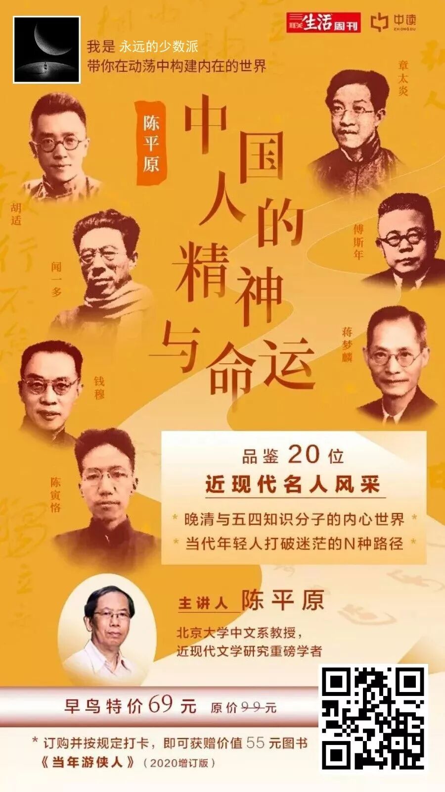 为此,北京大学中文系教授、近现代文学研究重磅学者陈平原开设了一门音频课程,以“中国人的精神与命运”为题,谈论二十位现代名家的言行与风采,让诸多有趣味有神采的文人学者,走出专业的小圈子,方便大众思考与借鉴。