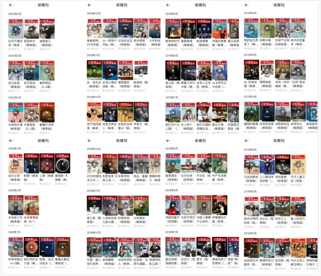 在这里,除了可以畅听全年52期最新杂志,2018年1月至今100多期的《三联生活周刊》,都能免费听!(三联的老读者不要太激动)