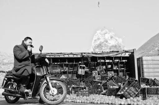 车继续往前开,上来一群穿着孝服的人。他们一定是刚刚参加完一个葬礼,一群人沉默抽烟,车上的氛围也因为他们的到来而变得庄重。车缓缓停下,我看到一支迎娶的队伍迎面而来。透过车窗,我辨认新郎和新娘的面孔,看这一对沉浸在幸福中的人。