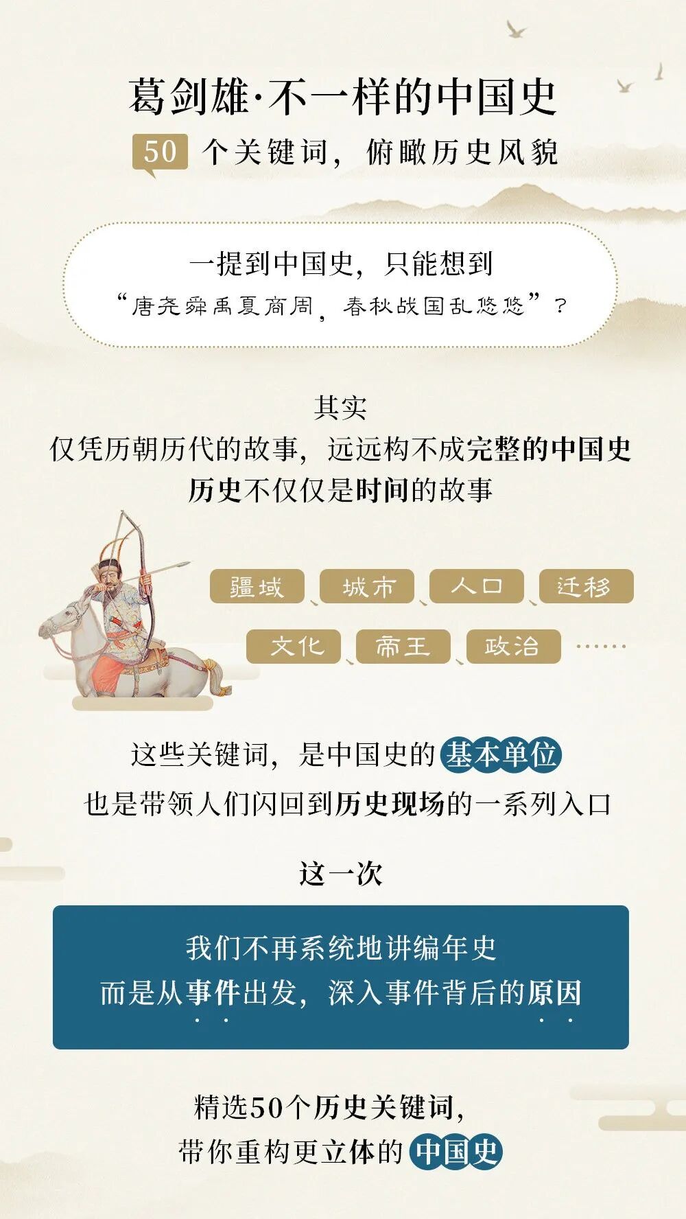 葛剑雄选择的办法,是开一门课,抛开朝代更迭那些传统叙述方式,用50个关键词,俯瞰历史风貌,跨越三千多年的历史,解读“不一样的中国史”。