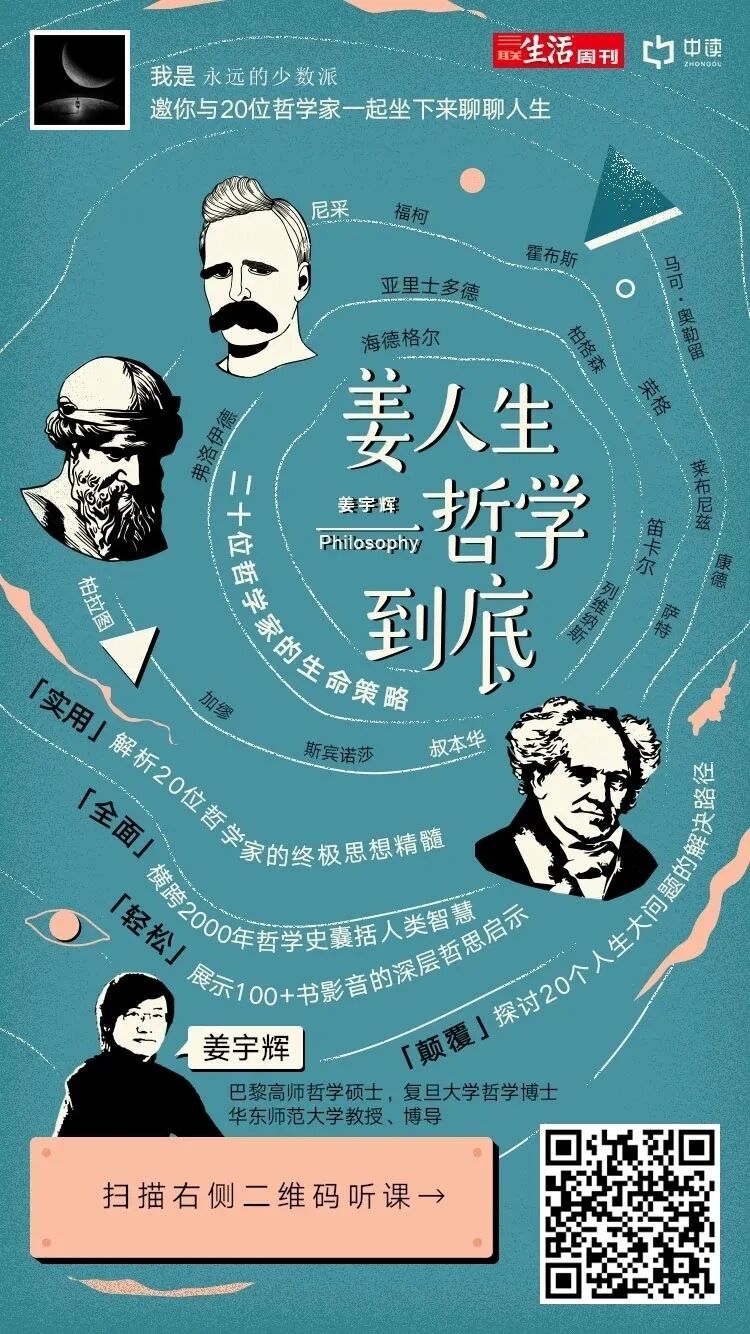 这门哲学课程将围绕人生中有关孤独、爱恨、生死、迷惘、欲望等20个“大问题”展开,每个“大问题”分为5讲,为你讲述海德格尔、亚里士多德、叔本华、尼采、加缪、柏拉图、萨特等20位古今哲学家的思想体系,从中探索出属于自己的生命策略。