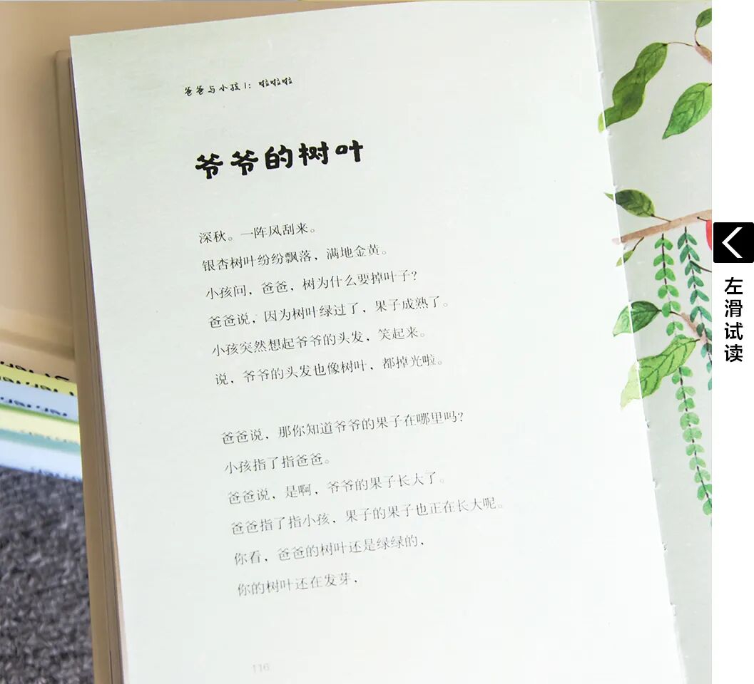 爸爸说,是风筝线断了。风的力量太大,线产生的拉力也增大。线承受不住了,所以就断了。爸爸说,好像是,其实不是。是因为风筝没有独立飞翔的能力。因为依赖线,所以不能飞得更高;因为依赖风,才会被风从天上吹落。”书中还有一个故事,爸爸与小孩爬山过程中,小孩发现,山顶的塔上有根尖尖的针,于是问爸爸这是什么——