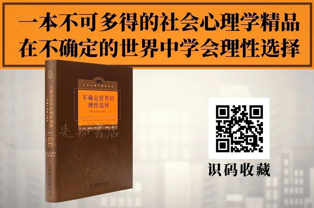 为此,先知书店诚挚推荐:海斯蒂《不确定世界的理性选择:决策与判断的心理学》。本书是近年来社会心理学领域一部重量级著作,第一版即获得美国心理学会威廉·詹姆士奖。