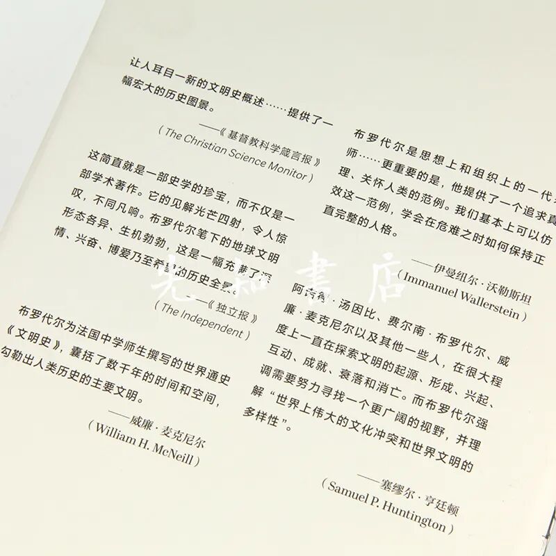 初看这本《文明史》的书名,很多人把它当作了一个缩略版的世界史,以为大致就是把世界各国重要的历史事件,按照时间顺序串起来。但如果真是这样,那这本书就是百度百科,而不是一本大师级的名著了。关键是要说清楚:什么是文明?世界各大文明都从哪里来,又遵循什么样的演化逻辑?更进一步,说清楚世界重大的文明冲突,究竟“冲突”在哪里?从这个角度来看,文明史的意义,已非传统的编年史、事件史可比。而这样宏大的主题,不是史学大师,还真无法驾驭。在国际史学界,布罗代尔被誉为“历史学家的历史学家”,甚至有一种说法,如果史学成为诺奖奖项,只要布罗代尔愿意,每年的获奖者都是他自己。《文明史》的初衷是为了作法国高中生的教材,但一写出来,却成了公认的名著。如果所有历史课本都写到这个水平,谁还会讨厌历史课?第一部分“文明史”着重叙述了有关文明与文化的问题;第二部分“欧洲以外的文明”分为三个小部分,分别介绍了“伊斯兰与穆斯林世界”“非洲”“远东”的文明;第三部分“欧洲文明”同样分为三个小部分:欧洲、美洲以及另一个欧洲(叙述东欧和俄国的历史)。简明扼要,提纲挈领,用600页的内容,布罗代尔就将文明史和世界各大文明的关键问题,梳理得清清楚楚。读完这本书,再读其他历史书,或回看今天的世界,能获得一种难得的通透感!先知书店诚挚推荐:年鉴学派史学大师布罗代尔传世经典《文明史》。识别下图二维码,即可一键收藏。