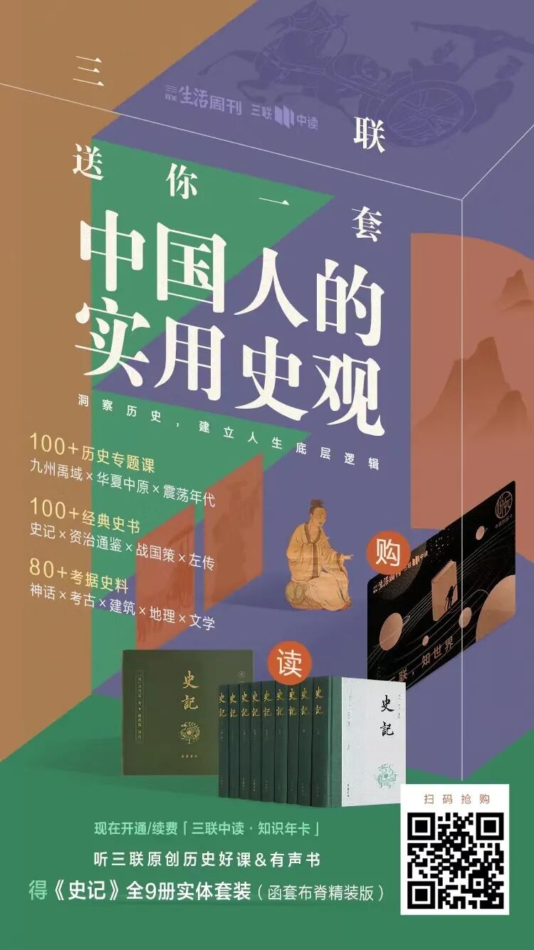 现在开通「三联中读·知识年卡」,立刻听三联原创历史好课&有声书,畅游人文领域,得《史记》全9册实体套装(函套布脊精装版)!成人读,以史为镜,洞悉世事人情,学习为人处世的智慧,人生格局大不一样。 孩子读,从小培养大格局、大心胸,积累历史素材典故,轻松学好大语文。两餐饭的价格,入手一套全家都能享用的知识大餐,这笔投入太值了!↓点击【阅读原文】,立即购买