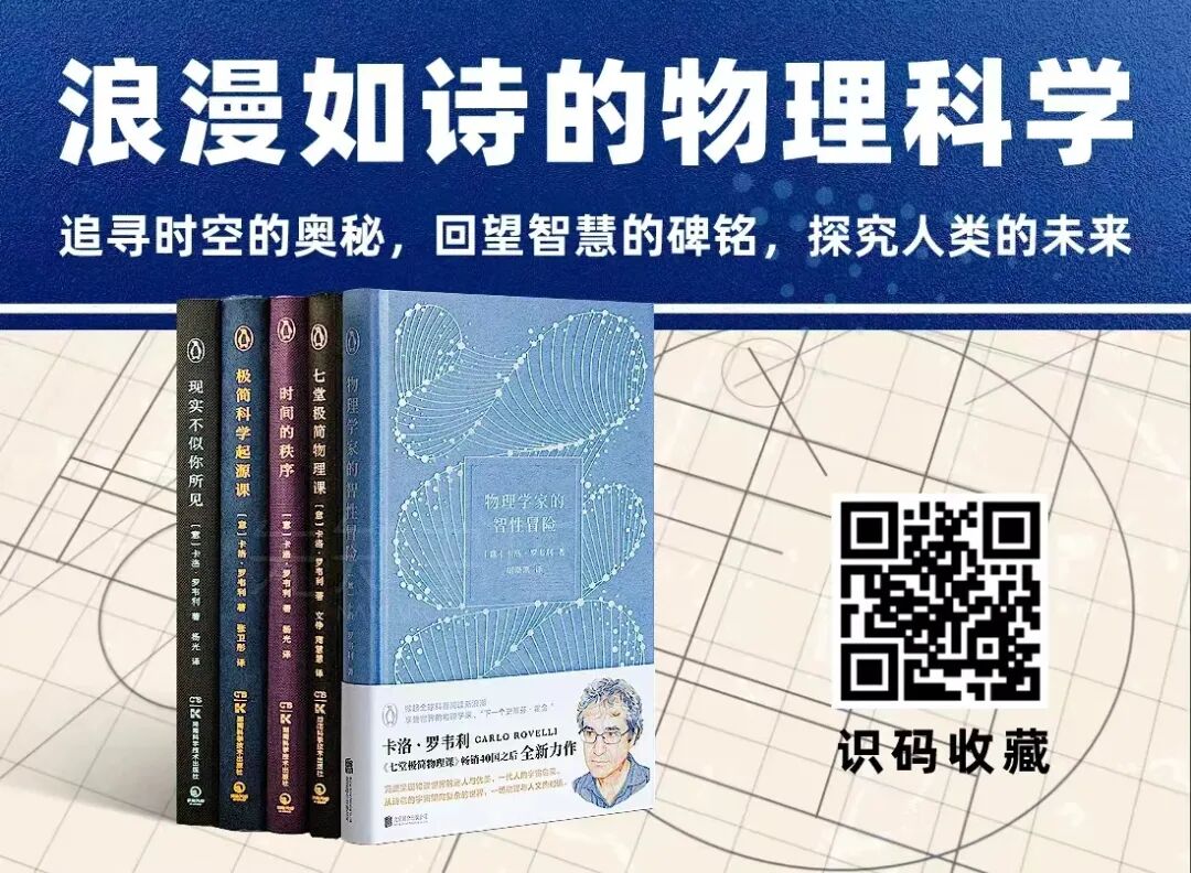 “伟大的科学和伟大的诗歌一样,都是有远见卓识的,有时可能会得出同样的见解。”他的书是物理学与哲学的精妙结合,完整呈现科学与人文的精妙和优美。长按下图,识别图中的二维码,即可购买收藏卡洛·罗韦利“极简物理课系列 ”。注:本文选自网络, 原载于“难得书院”。推送时做了技术处理。