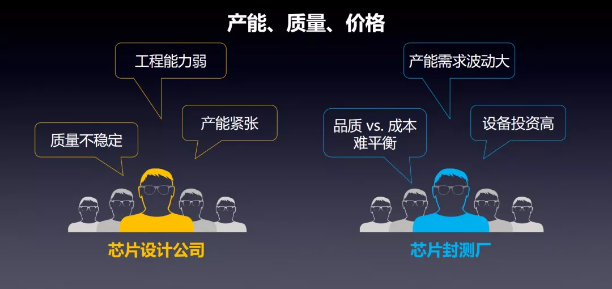 因此,在这种周期性波动的行业背景下,对芯片设计公司而言,如何准确预测芯片测试的产能、同时保证性价比至关重要;而对测试厂而言,产能的波动所引起的现金流风险如何得到控制则是关键。具体而言,如何去解决芯片设计公司和测试厂的供需矛盾,其痛点在于测试设备、测试工程能力和工厂管理水平。