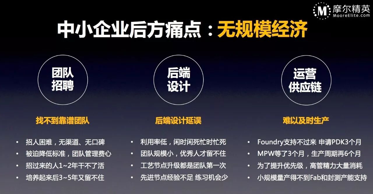 如果说,按照半导体产业50年来进行精细分工、剥离整合从而实现规模经济的趋势,那么,如果有第三方能够提供稳定可靠的后方支持,很多中小芯片公司是不是也可以剥离后方部门?