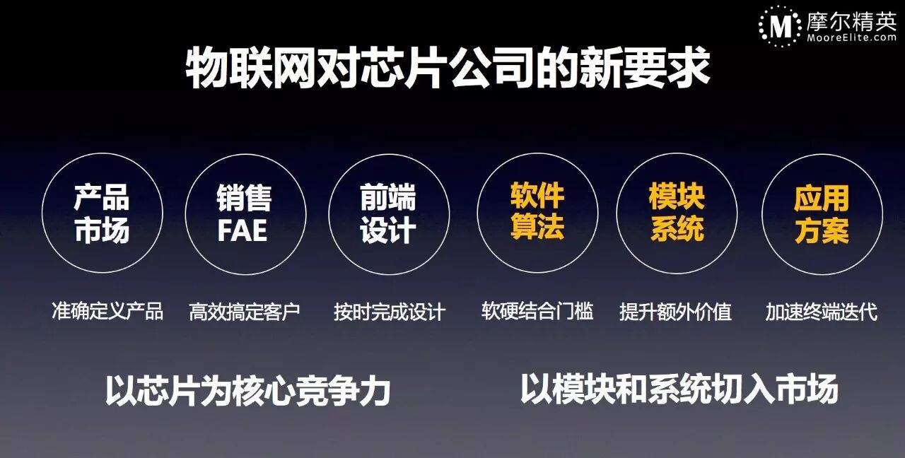 对于芯片厂商,要慢慢习惯、最好主动转型,成为“以芯片为核心和基础, 以模块和系统切入市场”的新型芯片企业。一个以芯片为核心技术的公司,可能80%的人不从事芯片相关工作。