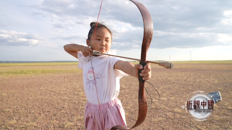 斯乐苏荣:她一岁半的时候,我射箭她就喜欢跟着我去,三四岁的时候让她拿那个轻的弓练习,动作就已经挺到位了。现在社会变化快,孩子们的未来让他们自己决定,但我还是希望能更多地回到草原居住。