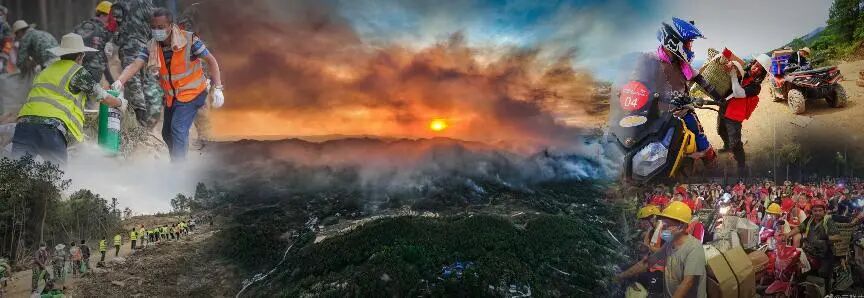 “最危险的时候是火场距离我只有10米,去最后一个救援点,上面的路是没有隔离带的,路上全是石子、泥沙,但是我们所有的摩友还是很艰难地上去,下面就是万丈悬崖。我们召集了救援山火的机车团队,在我身旁的小伙伴和对面摩托车相撞了,躺到地上第一句话就是,‘不要管我,先去救火。’我父母第一句话问我的是,‘火灭了没有?’第二句才是问我的情况,‘中没中暑啊?摔没摔啊?火场危不危险?’”