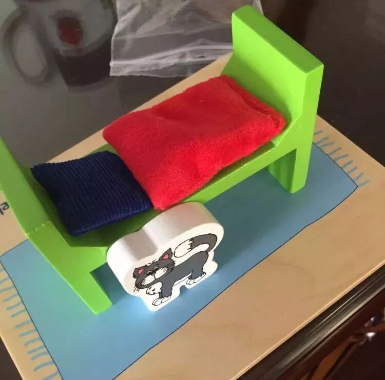 孩子收到这款玩具后非常兴奋,一方面是收到礼物的高兴,另一方面是盒子上的可爱小老鼠也深深吸引了她。抱着盒子跑了几圈后就要求马上打开,打开以后对里面木质的猫和小老鼠也特别喜欢,爱不释手。