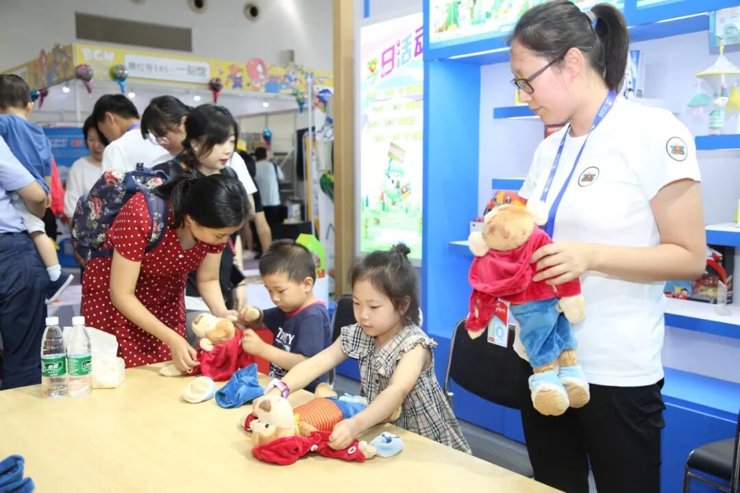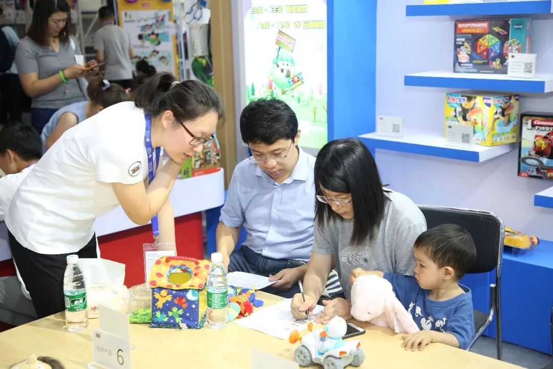 除了VIP体验,这几天在展位上,我们每天都有多场有奖互动游戏。这些游戏会鼓励孩子亲自动手来完成一个小任务。任务完成后,每一位小朋友都能得到一份小礼物。