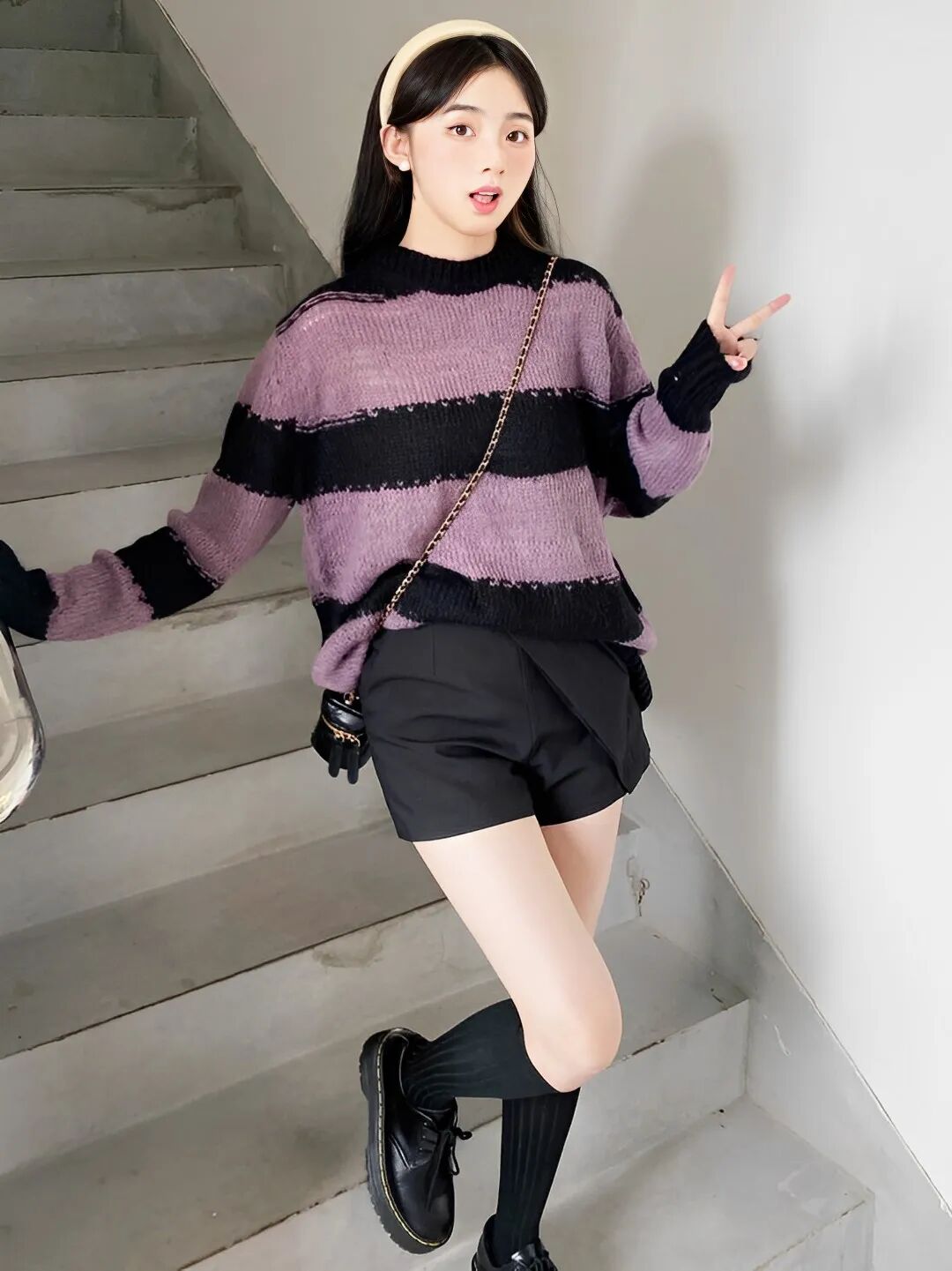 选择3孔马丁靴的时候则需要搭配长筒袜来修饰👇
