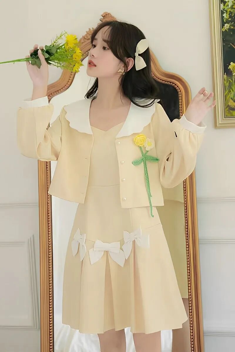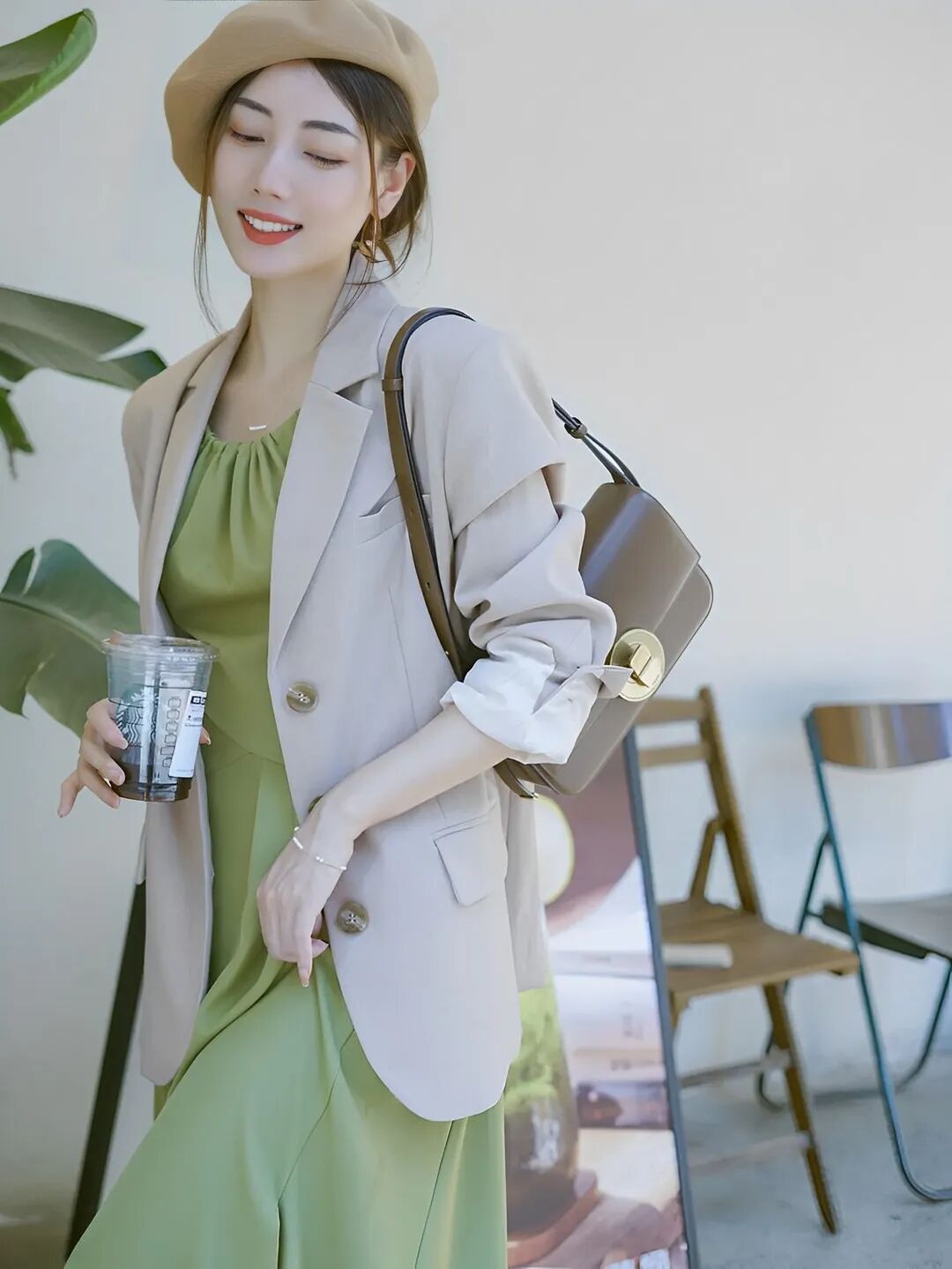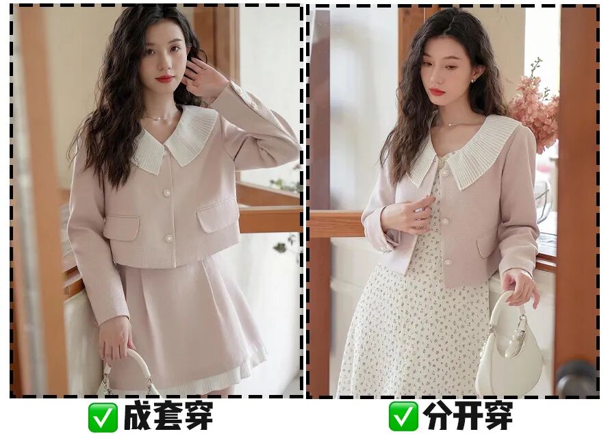 最后就是懒人必备的套装裙喇,上班、聚会想都不用想,直接成套穿,精致不费力。
