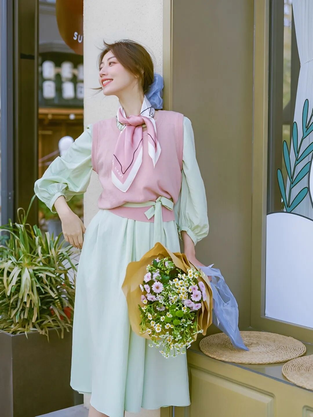 其次是搭配马甲,不仅能制造出腰线,还能增加穿搭增次感,让你变身时髦精。