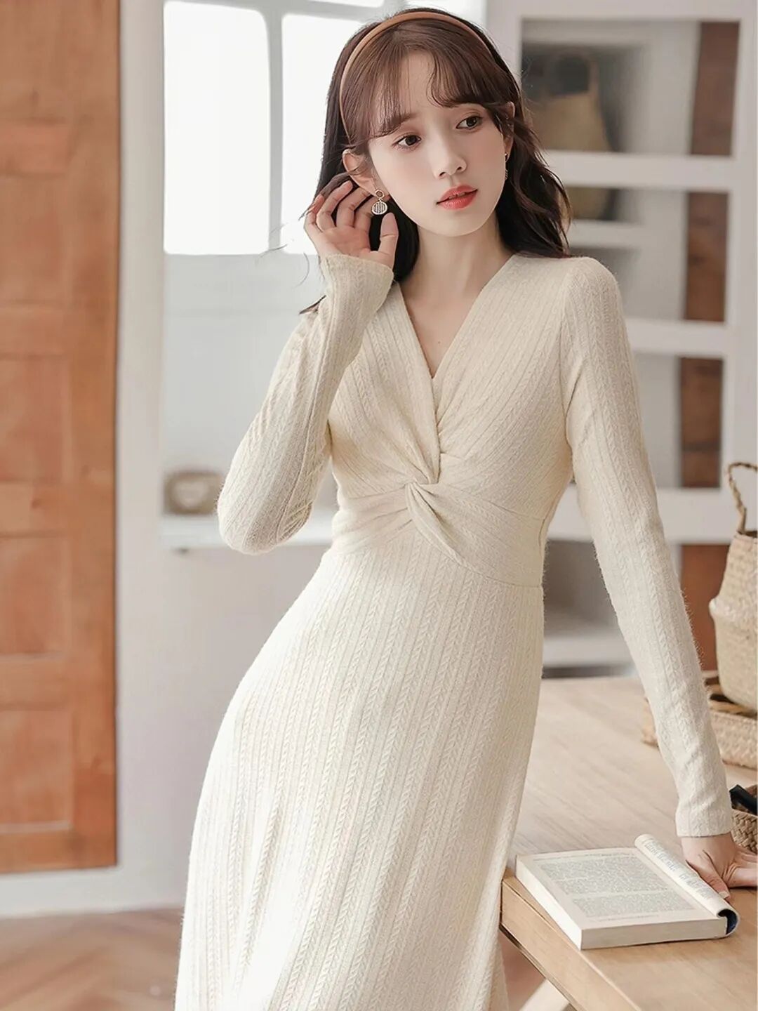 不过微胖的姐妹也并非不能穿针织裙,只是要选好一条针织连衣裙,一要看版型,二要看领型,三要看针织的纹路。