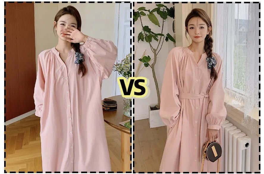 首先是在款式上,选有收腰的款,会比无收腰的款更显瘦。