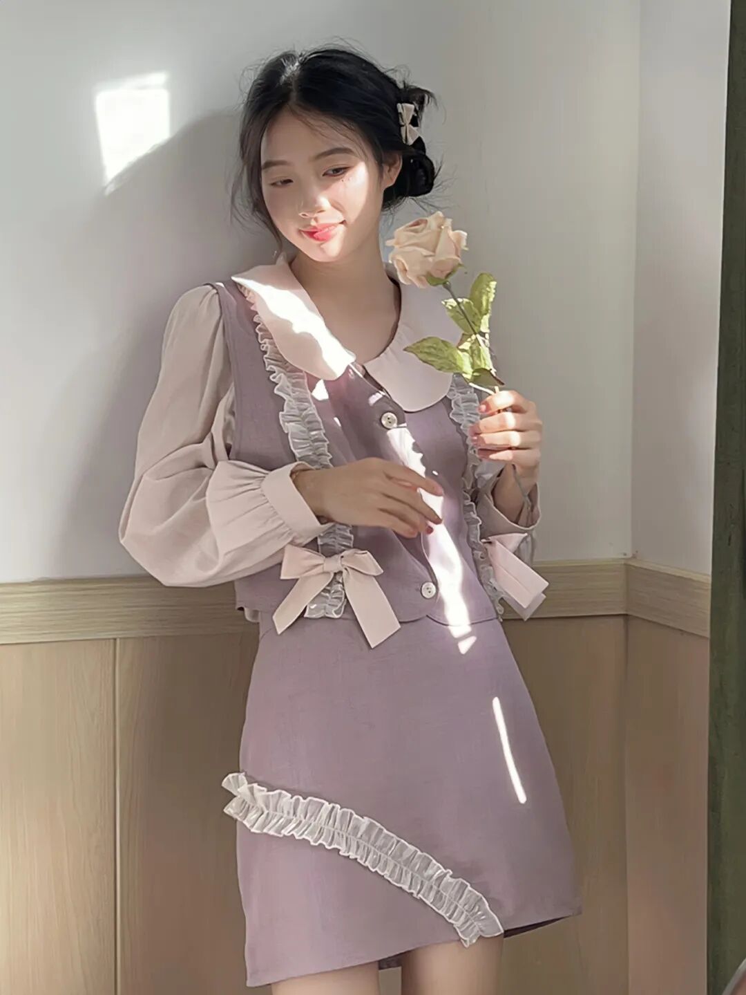 其实比起小香风、格子套装,踩雷率比较低的,是纯色的套装裙。