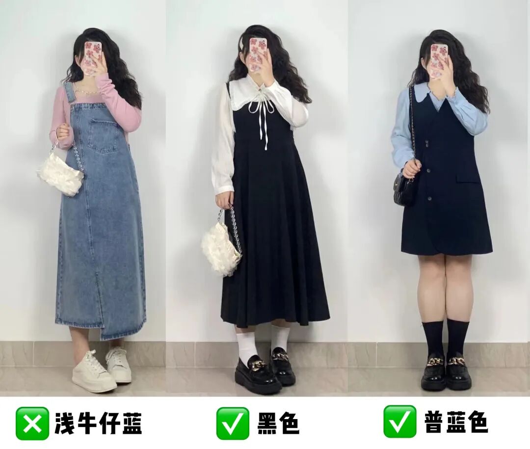 但是我翻了几个微胖博主的穿搭,发现肉肉女孩也是能把背带裙穿好看的,就是要注意以下这两点。