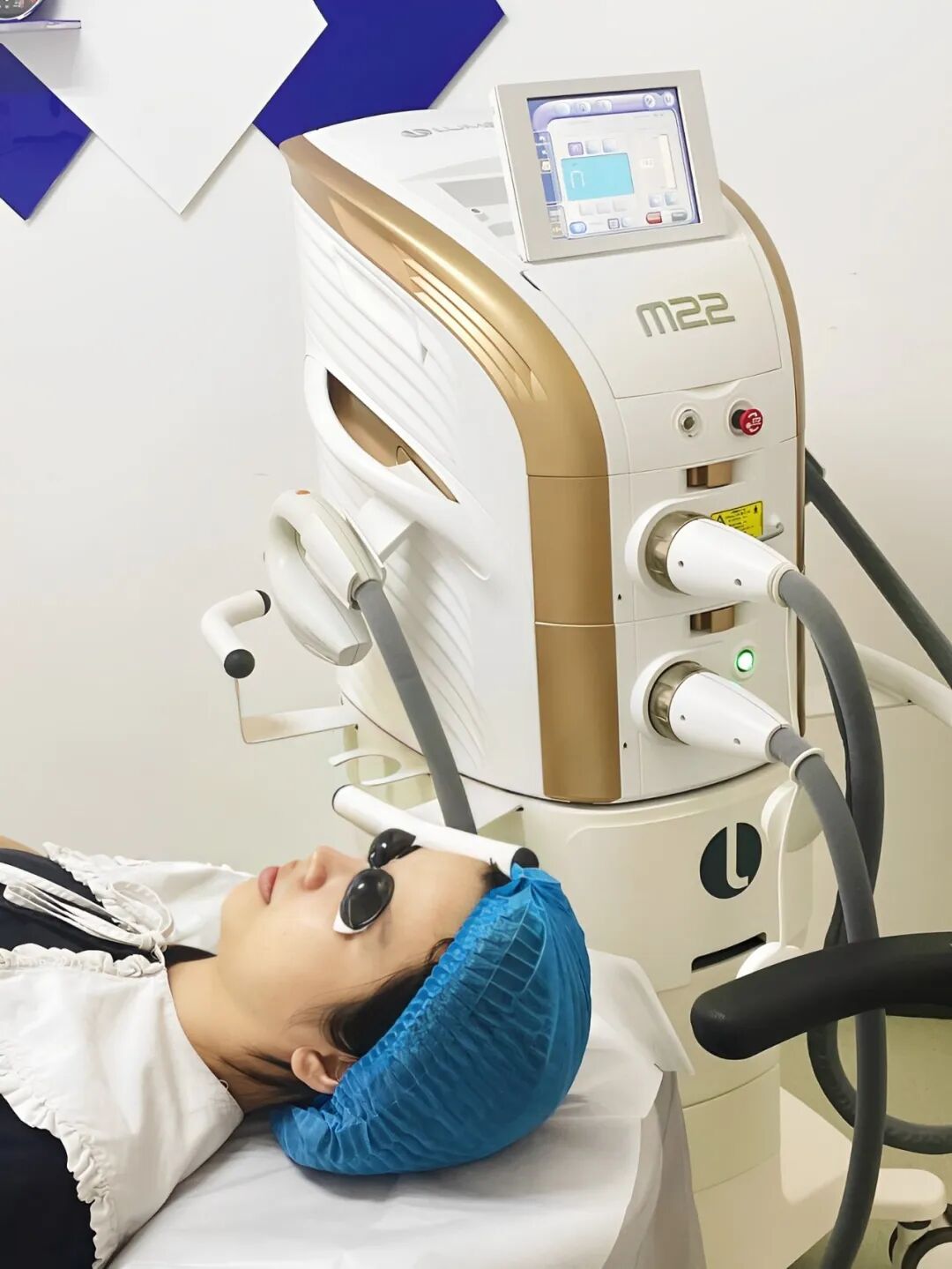 面谈结束后接待人员带温温到治疗室,开始做超光子项目喇~使用的机器是全新升级的M22七代 AOPT黄金超光子👇