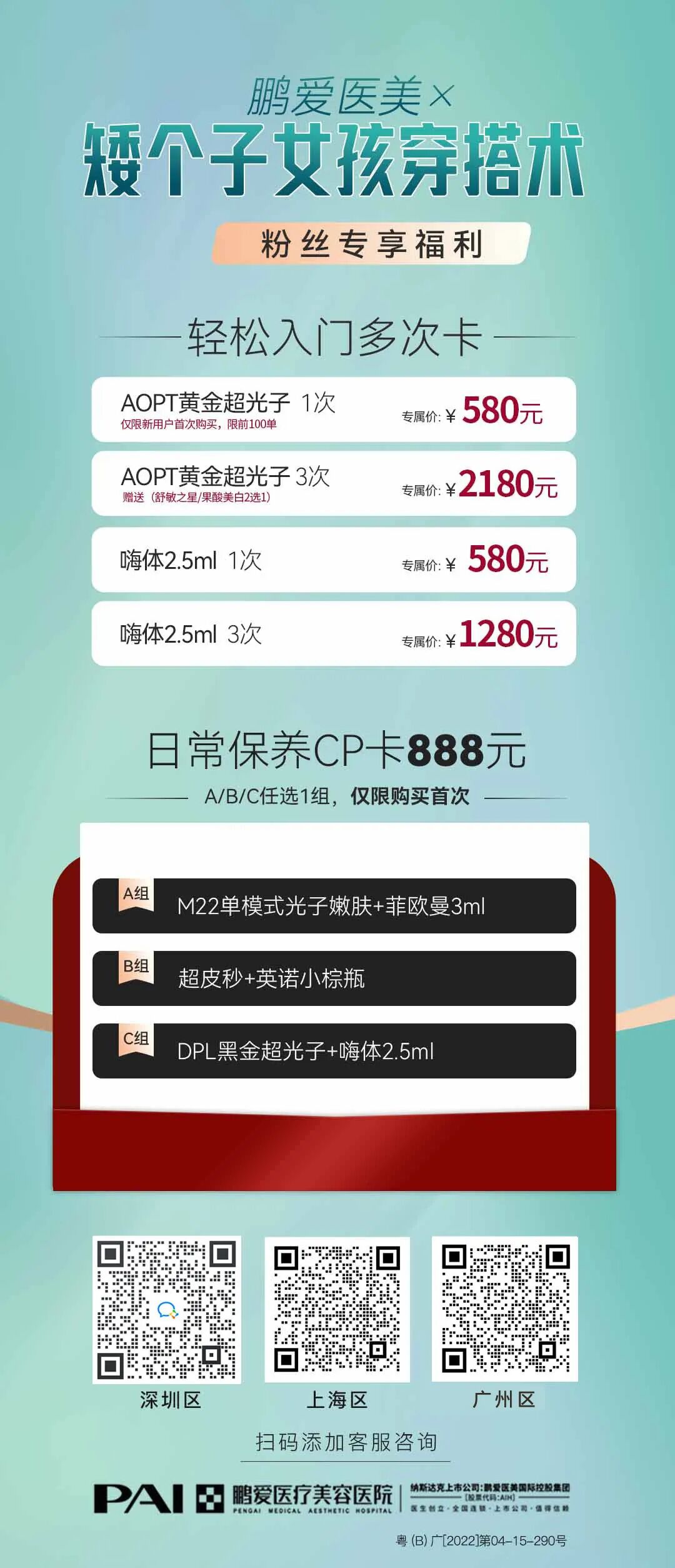 现在在鹏爱医疗美容医院做超光子or嗨体水光还有优惠喔,单次体验只需要580元,简直不要太划算!近期想做医美的姐妹冲冲冲!