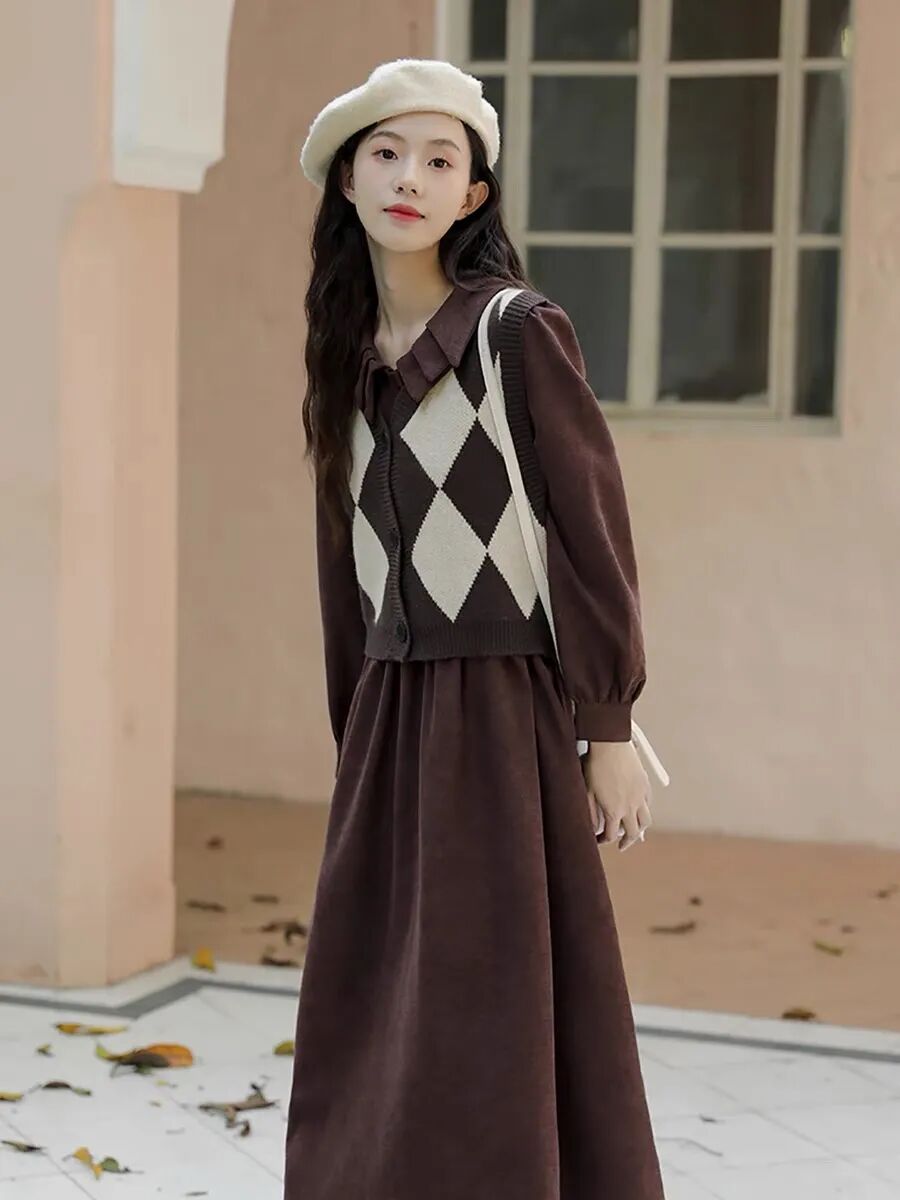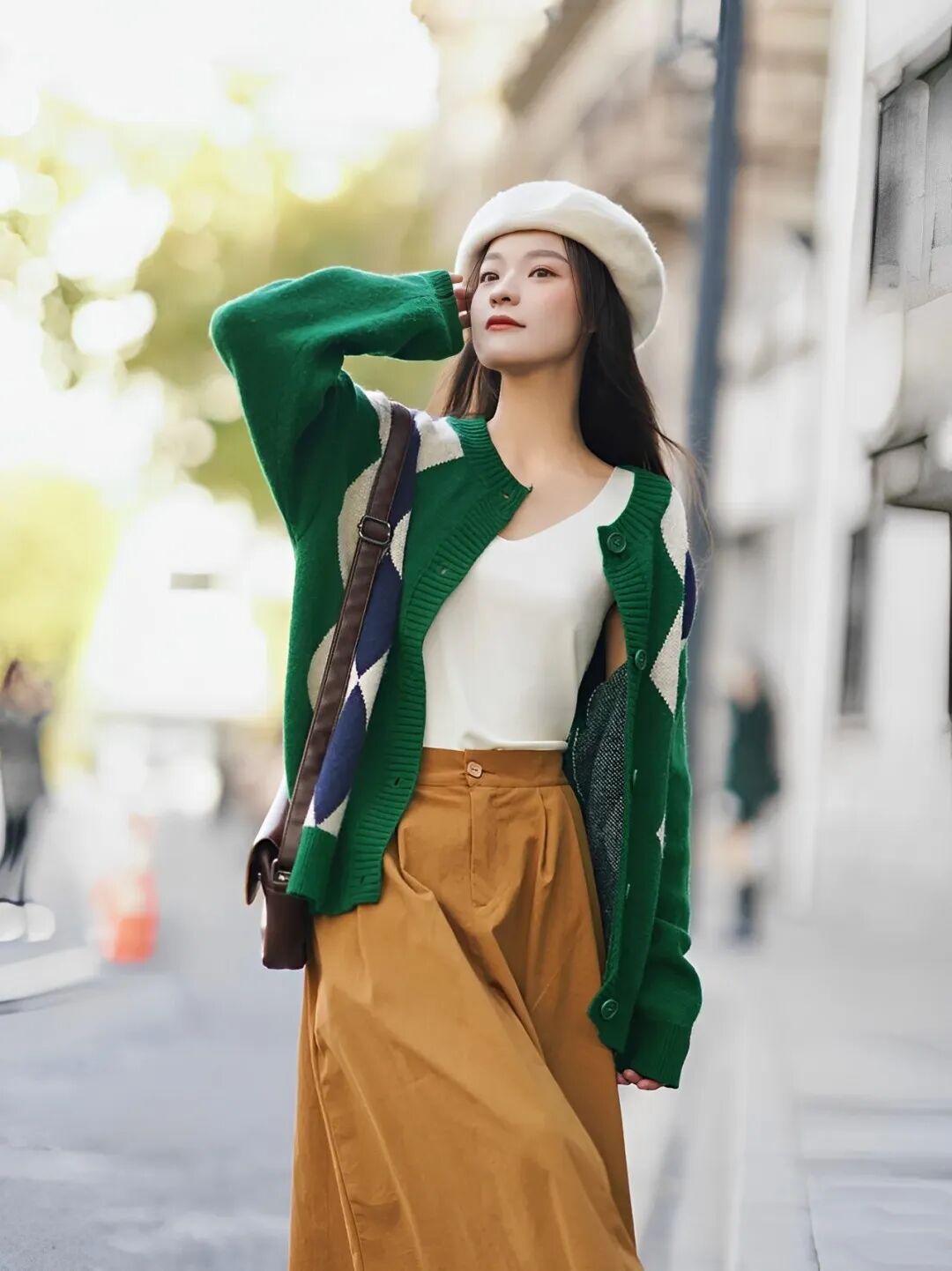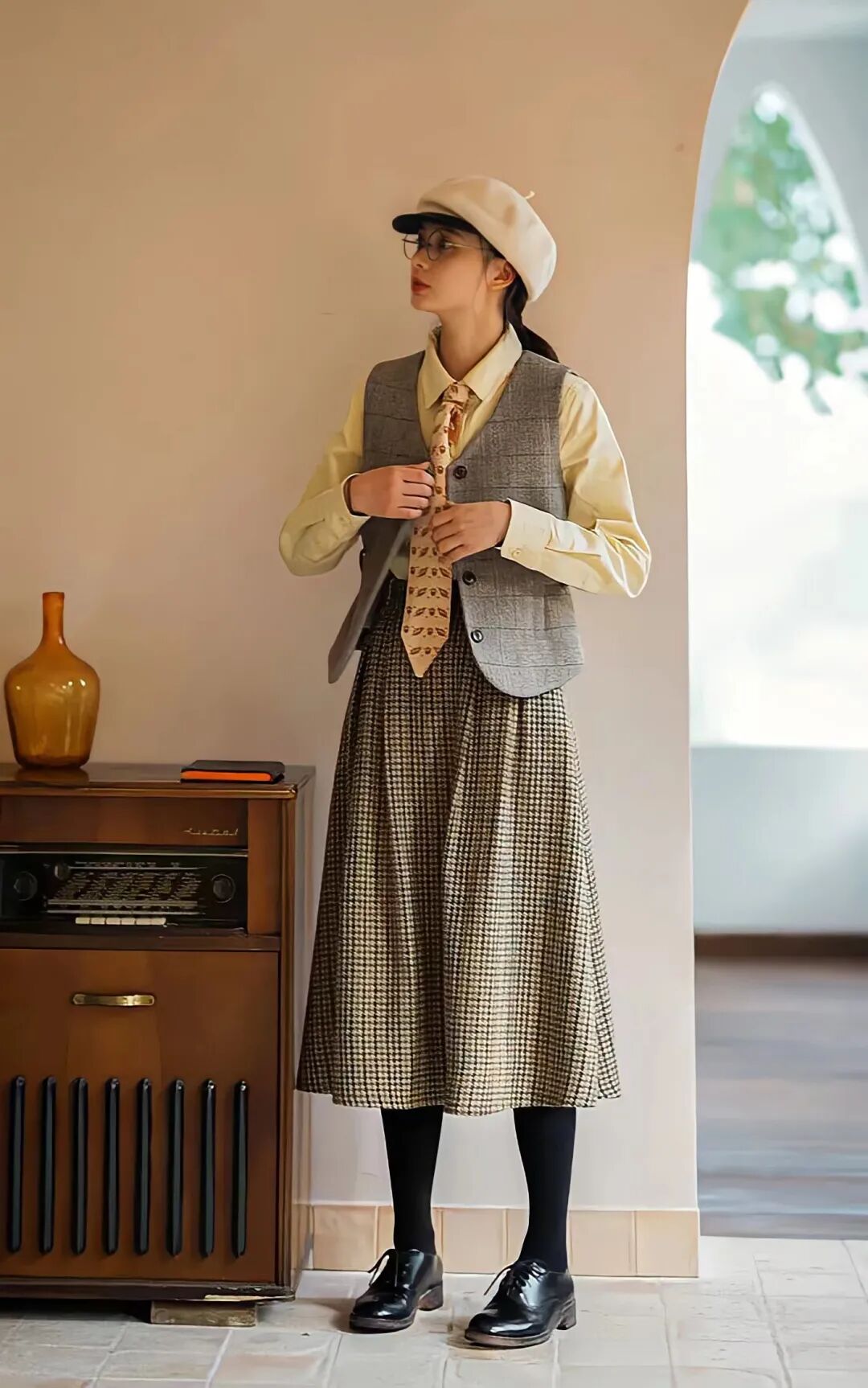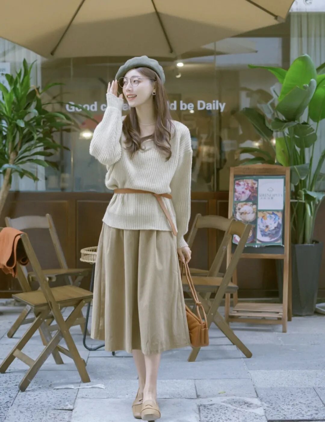 无论是半裙还是连衣裙,加上马甲后,既有腰线又有叠穿的层次感。