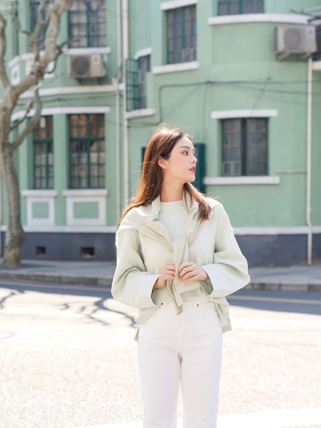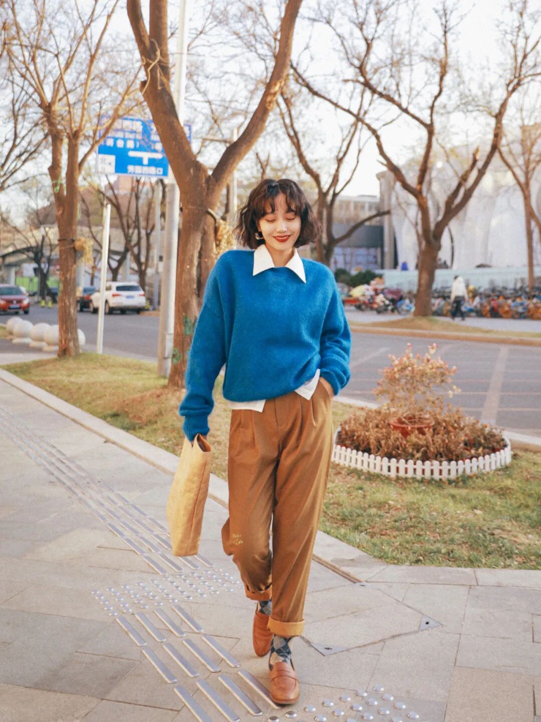 想要更显瘦,那就换成衬衫做毛衣内搭,露出脖颈能降低局促感。