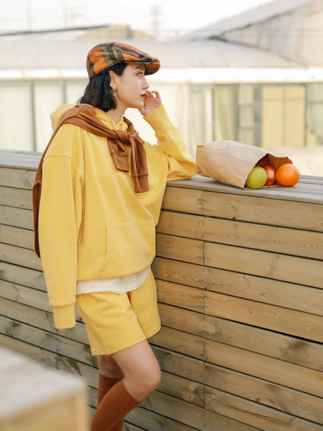 那要怎么穿才不会显得很邋遢、臃肿呢?其实很简单,给卫衣加条边就可以。