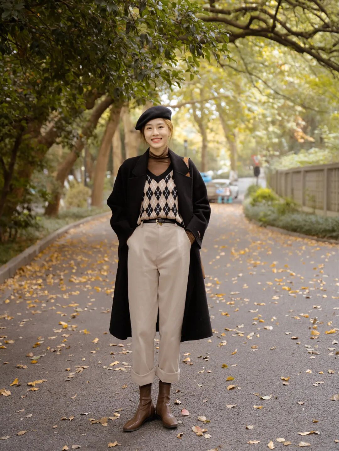 比起夏天穿搭没腰线的她,我更爱她秋冬单品的叠穿大法~