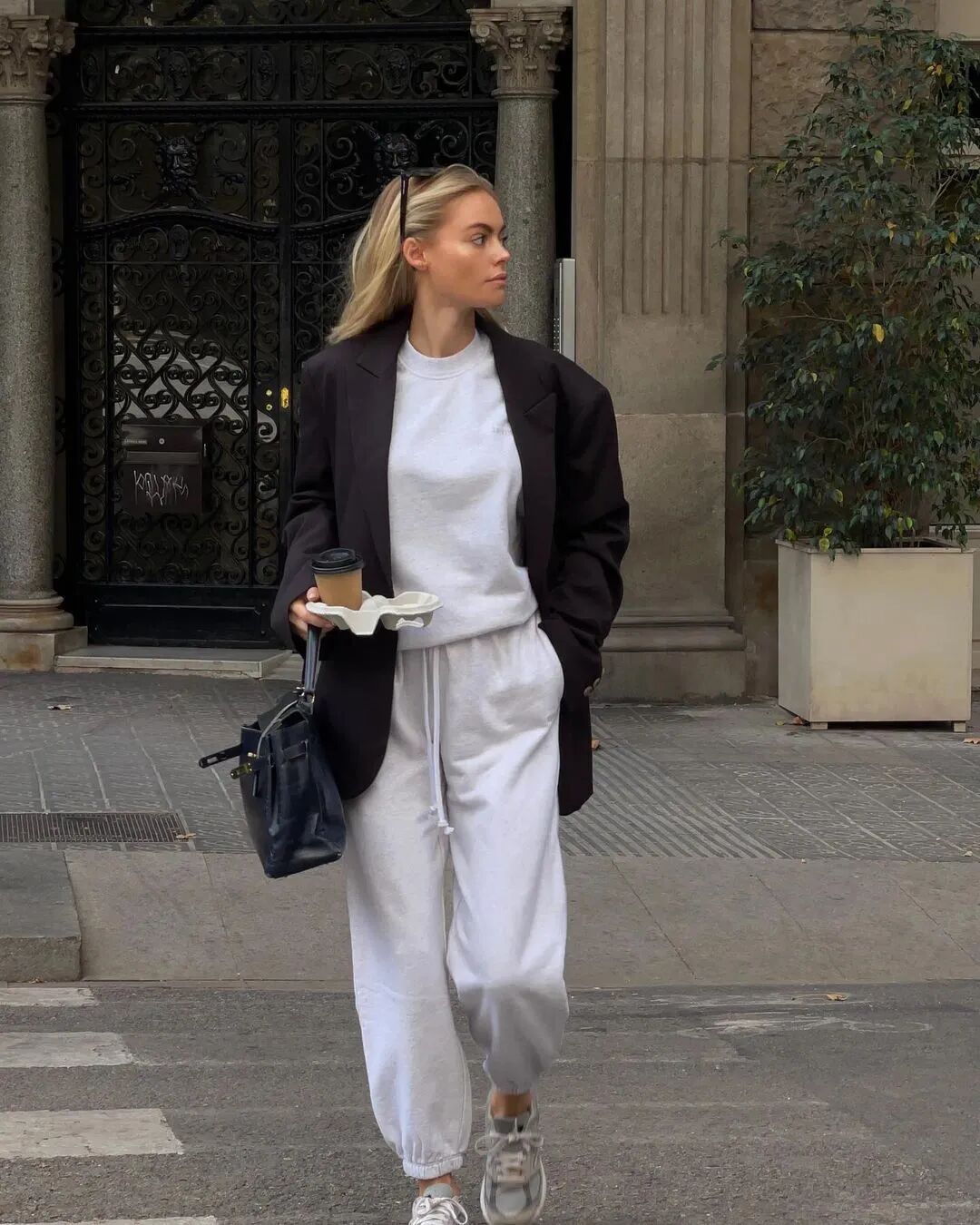 同时,相比阔腿裤,束脚的慢跑裤也会好驾驭,不挑人穿,日常出门都很适合。