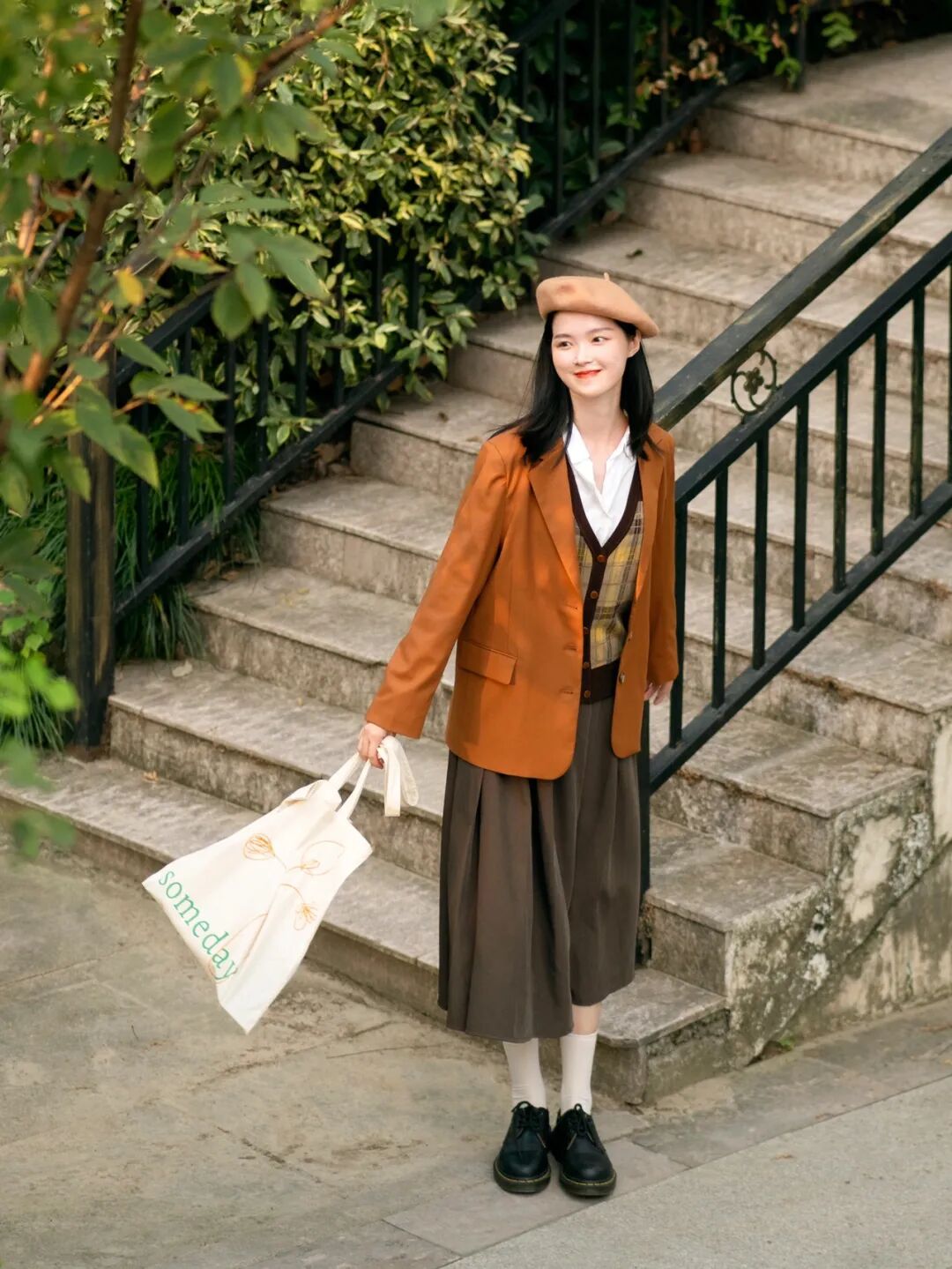 像半裙+马甲+西装,已经成为我秋冬常用的叠穿公式了,时髦又好穿👇