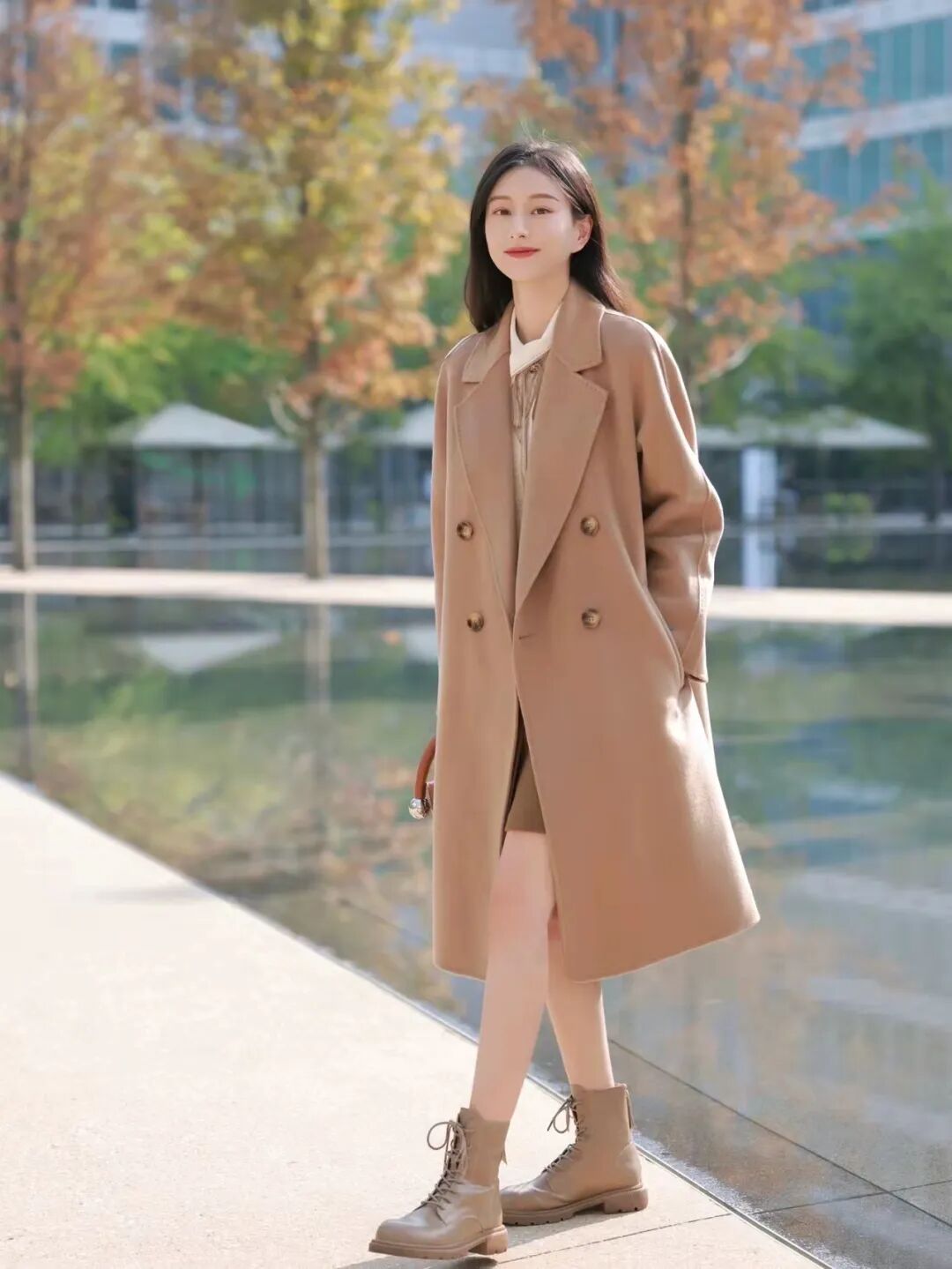 秋冬调色盘里怎么能少得了驼色,如果是想要秋冬不止黑白灰单品、又想百搭的小个子姐妹,驼色大衣就没错,穿上身就像是被秋冬拥入怀抱,自带氛围感滤镜。