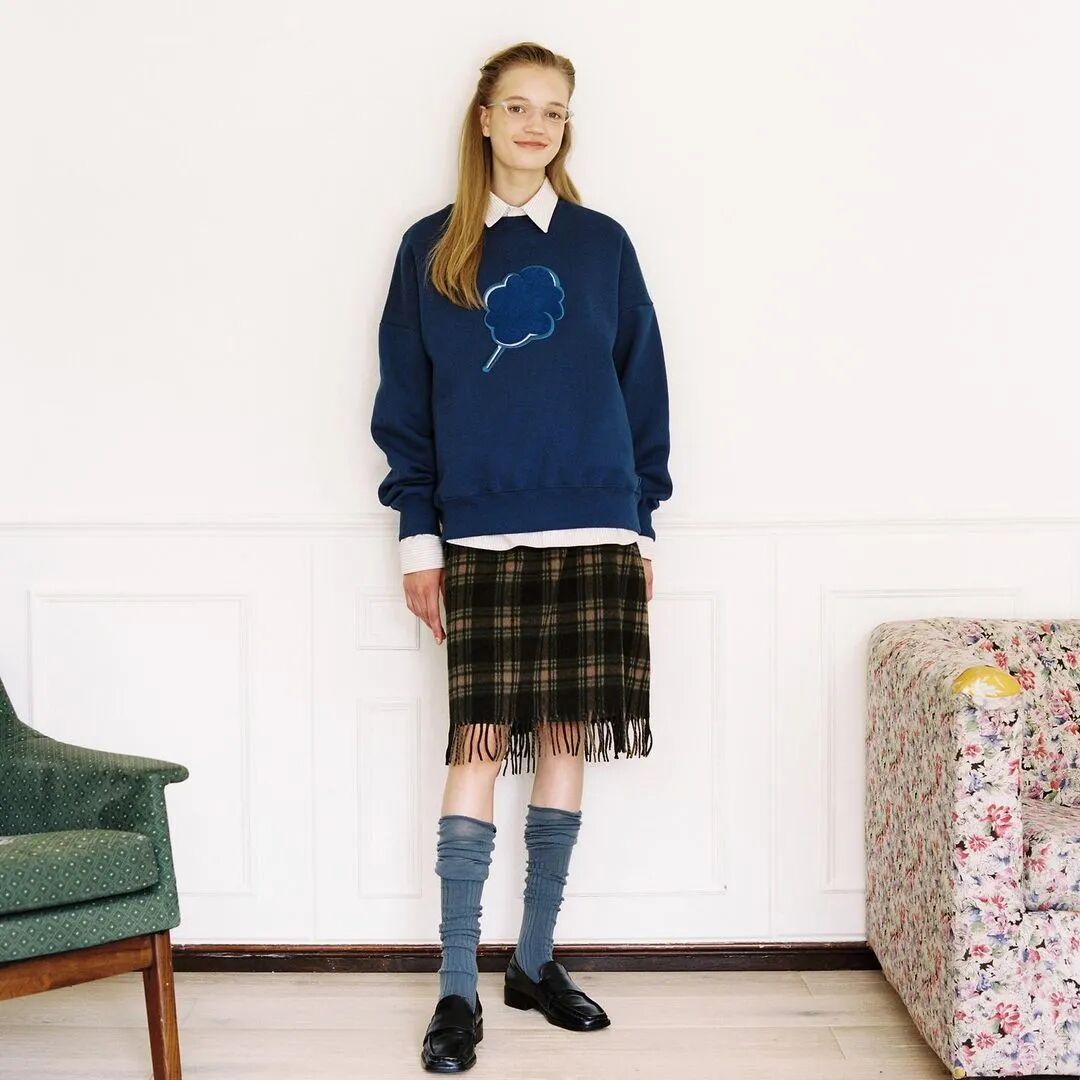 我会经常用白衬衫做卫衣内搭穿,露出白边会更有层次,担心卫衣容易穿出邋遢、随意的感觉,一条白衬衫就可以完美解决,当然,搭配毛衣也是不错的穿法。