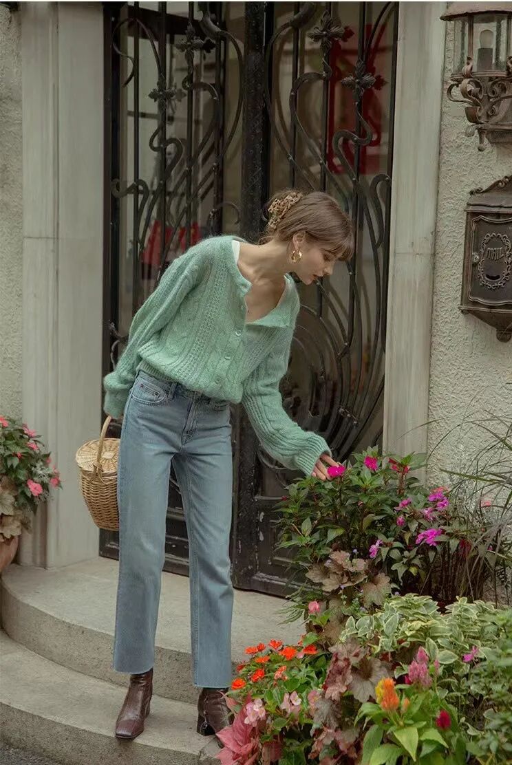 平时穿舒适休闲风比较多的姐妹,直筒裤就不能少,尤其是牛仔直筒裤,百搭、显瘦,搭配毛衣,也能很好的降低上半身的膨胀感,不至于穿起来显臃肿。
