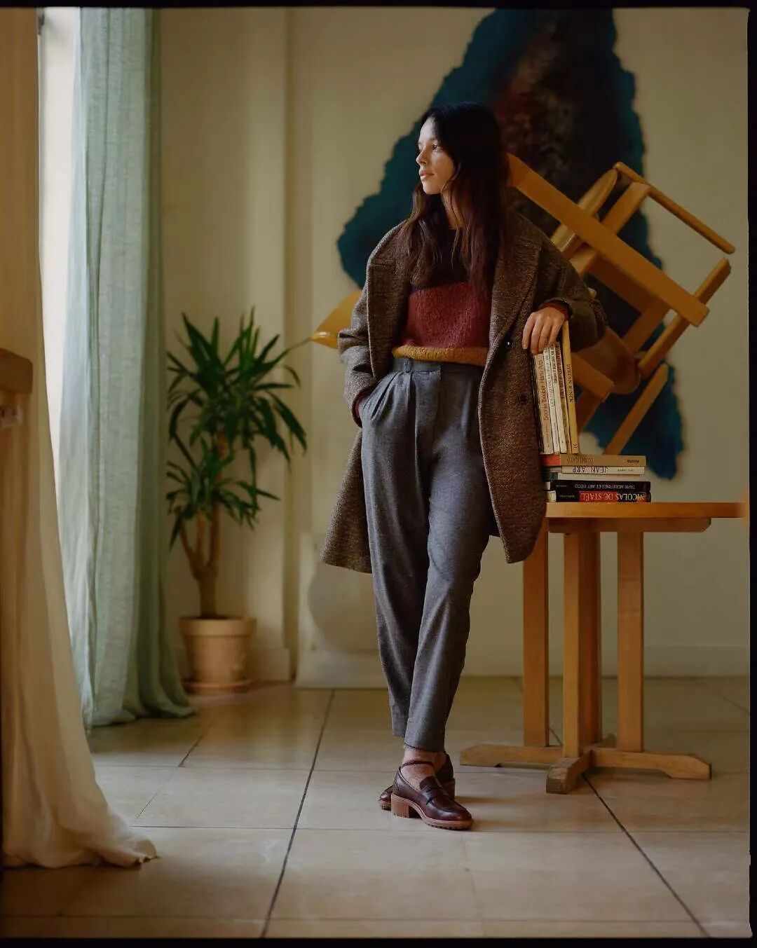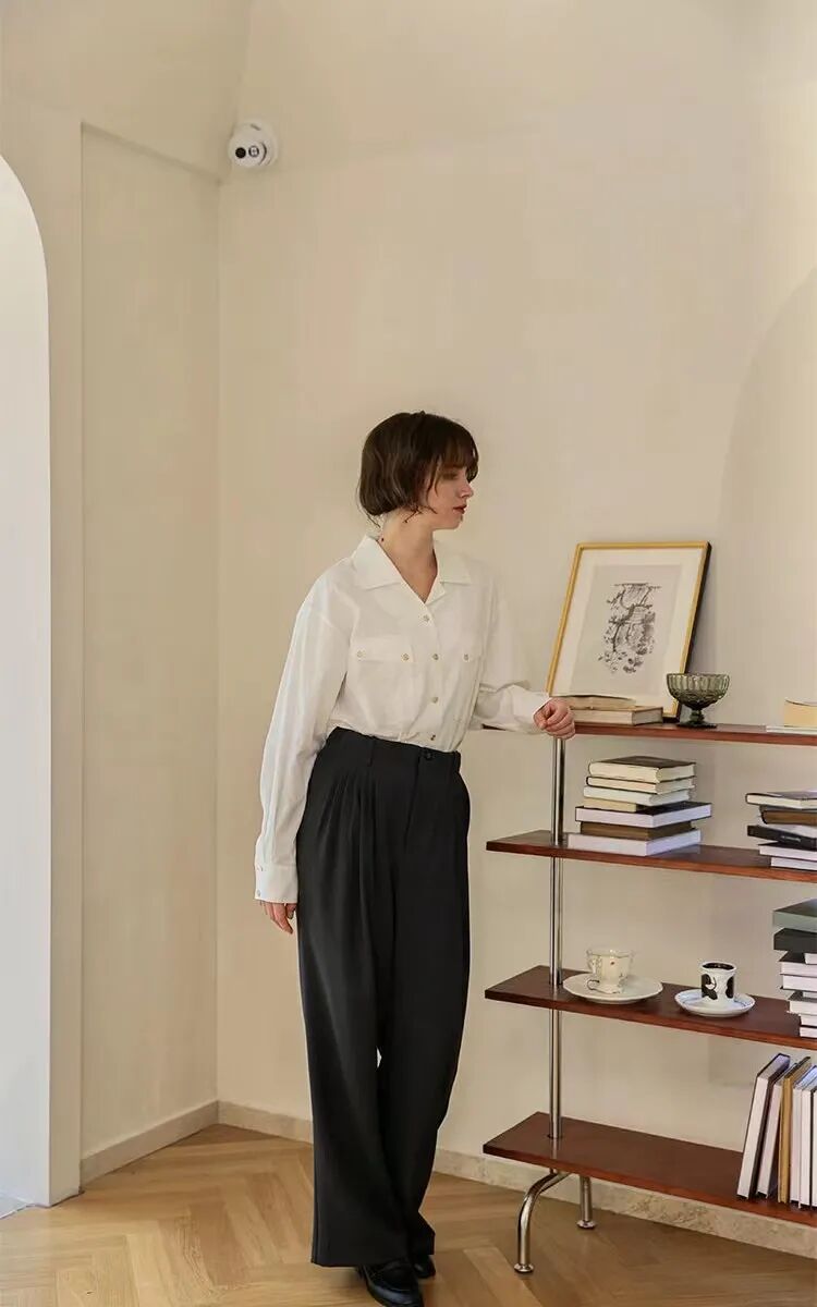 重点是,能完美的match裤装穿搭的气场,法式的慵懒感是不是就有了。