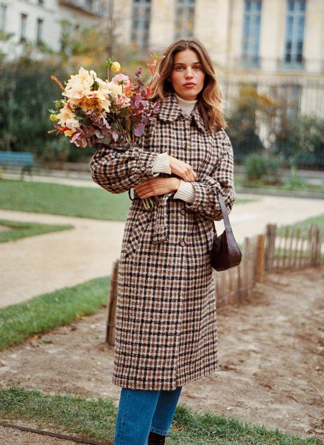 一提到格纹,很多姐妹第一直觉就是显老气,但是我们可以把老气换成复古感来穿,搭配的单品上尽量选择偏向年轻化,像毛衣、牛仔裤,绝对能打造出一套经典耐看的造型。