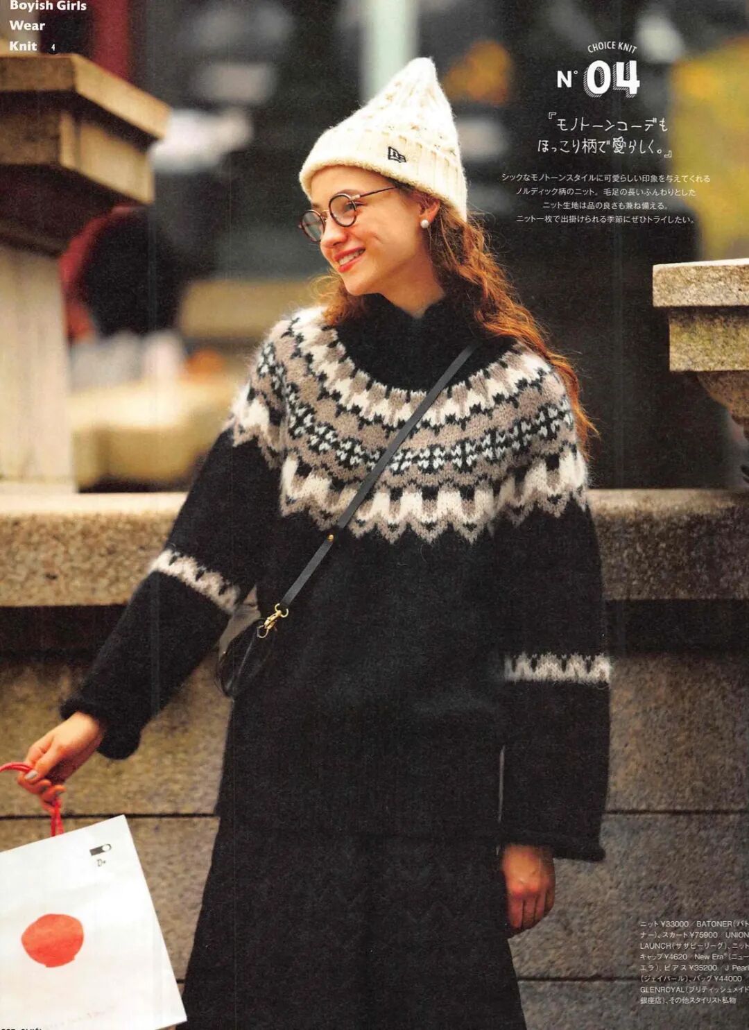 如果担心基础款毛衣单穿有点单调,可以入手一条费尔岛毛衣,让整体看起来更有秋冬氛围感,造型也是属于经典耐看那一挂的。
