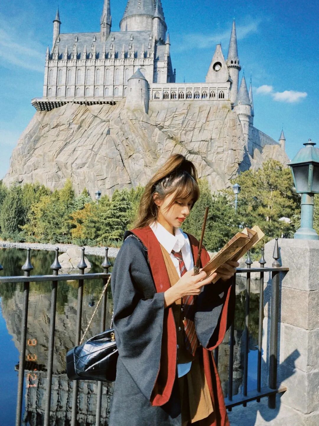 强烈推荐姐妹买一个魔法袍,穿上就是霍格沃茨的学员喇!(园区里的袍子太贵了,如果是单纯拍照的话建议买平替,或者租一件,就不会浪费)