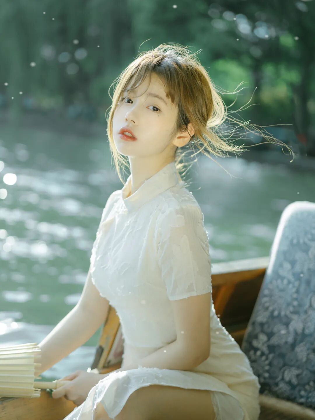 穿着旗袍在苏堤游船,摇曳着灵动的身姿,把江南女子的水灵柔美演绎出来,恍然间看到几分民国千金的影子~